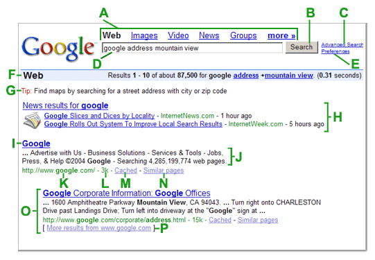 Mesaj konusu: Google Sonuç Sayfalarının Elementleri